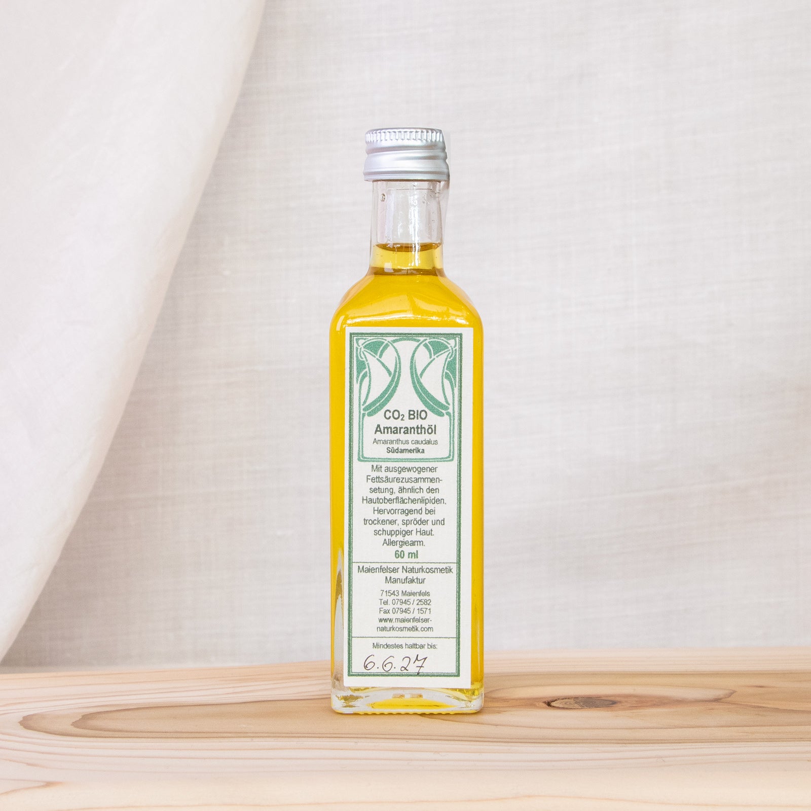 Aufgrund des relativ hohen Gehalts an Squalan (hautfettähnliche Lipidfraktion), den Sterolen und Tocopherolen (Großteil Vitamin E) und der ausgewogenen Ölsäurezusammensetzung kommt Amaranthöl den Hautoberflächenlipiden außergewöhnlich nahe und ist dadurch allergiearm und wird gut aufgenommen. Das heißt, im Zusammenwirken mit der arteigenen Vitaminfraktion, dem Squalan und der antioxidativen Wirkung, - wird eine UV-Zerstörung auf der Haut weitgehend vermindert (Radikalfänger).