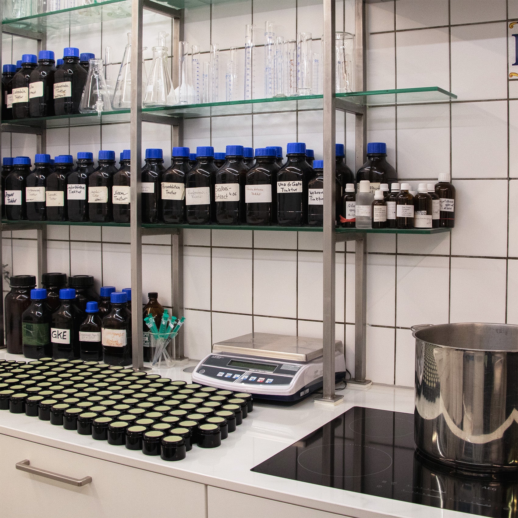 Naturrohstoffe von höchster Qualität (Bio, wenn möglich), Bio-zertifizierte, frische Kräuter aus eigenem Anbau, viele eigene Destillationen von rund 98 % aller Hydrolate und einigen ätherischen Ölen runden die Rezepturen ab. Die Inhaltsstoffe deklarieren wir vollständig, sowohl in deutscher Sprache als auch nach INCI-Norm.