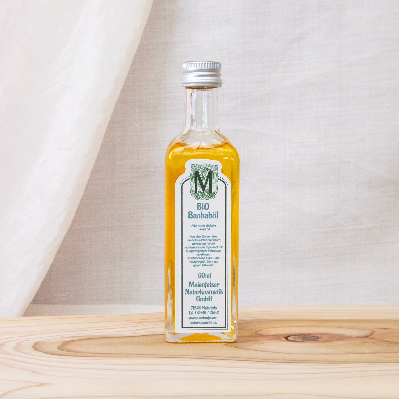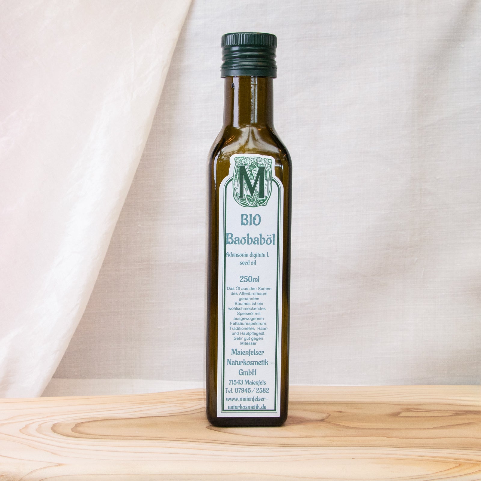 Ein atemberaubend schöner Baum mit beeindruckender Wuchsform, der hauptsächlich in Afrika wächst. Mit seinem mächtigen Stamm, der sich im Alter von unten her flaschenförmig nach oben verjüngt, stellt er eine monumentale Größe in der afrikanischen Landschaft dar. Im Fruchtfleisch der essbaren Früchte eingebettet sind die nierenförmigen Samen mit ca. 1 cm Durchmesser. Sie werden von vielen Tieren verzehrt, hauptsächlich auch von Affen, wovon der abgeleitete Namen (Affenbrotbaum) zeugt. Das aus dem Samen gepresste Öl weist einige Besonderheiten auf. Zu erwähnen wäre der hohe Palmitinsäuregehalt, der dem Öl eine sehr gute oxidative Stabilität verleiht und es dadurch als stabilisierender Zusatz zu anderen empfindlichen Begleitölen prädestiniert ist. Außerdem kann man mit palmitinsäurehaltigen Ölen wie z.B. Baobab den mit zunehmendem Alter abnehmenden Anteil der hauteigenen Palmitinsäure in der Hautschicht wieder ausgleichen. Dies macht das Baobaböl in der Hautpflege für reife Altershaut als wichtigen Hautpflegefaktor aus.