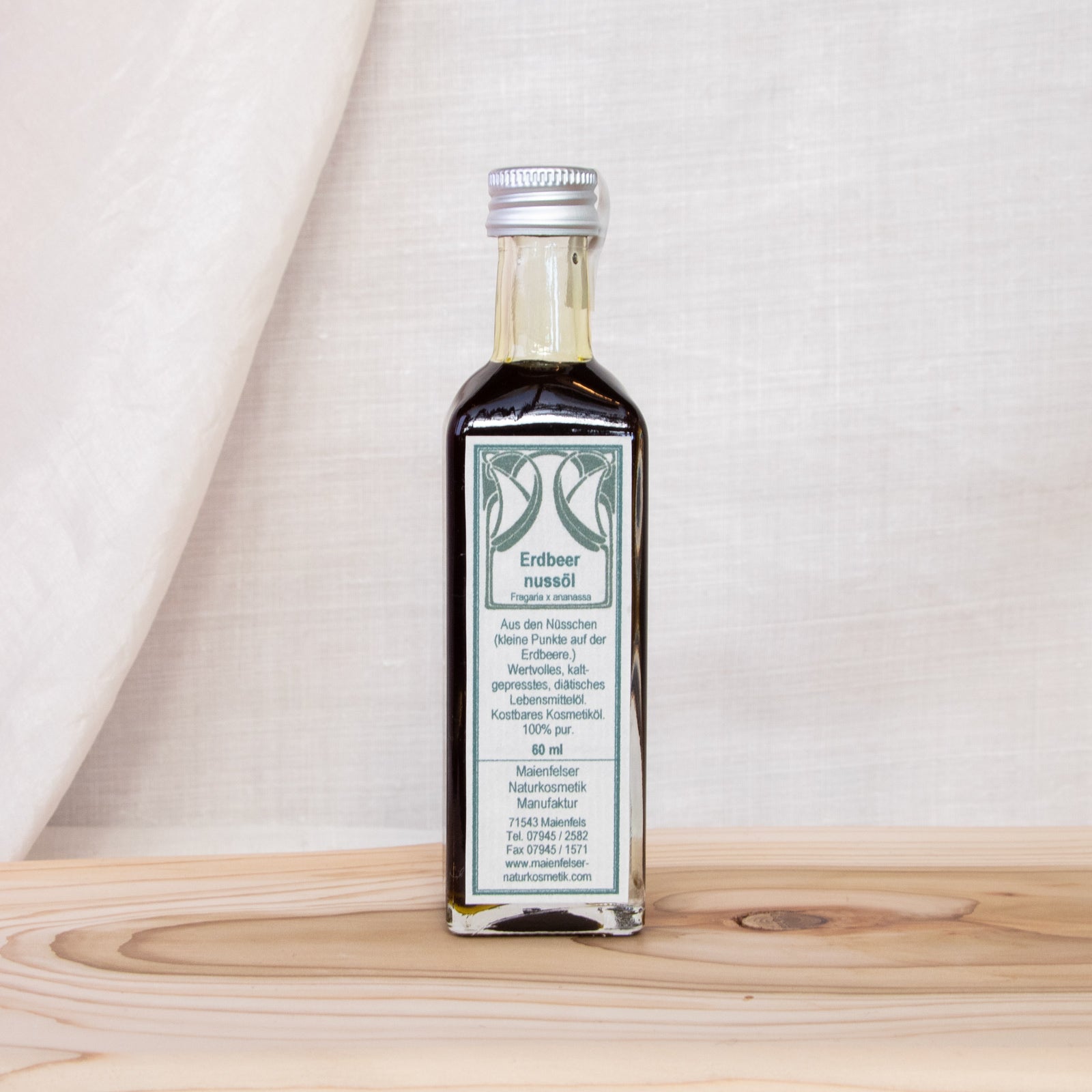 Die kleinen Pünktchen auf der Erdbeere sind ihre Samen, korrekterweise botanisch 'Nüsschen' genannt. Aus diesen Winzlingen wird das Erdbeernussöl gepresst. Erdbeernussöl zählt zu den besonders hochwertigen Beerenölen, da seine Fettsäureanalyse einzigartig ist. So ist der Anteil der gefragten Alpha-Linolensäure (Omega 3) mit 35 % erstaunlich hoch.