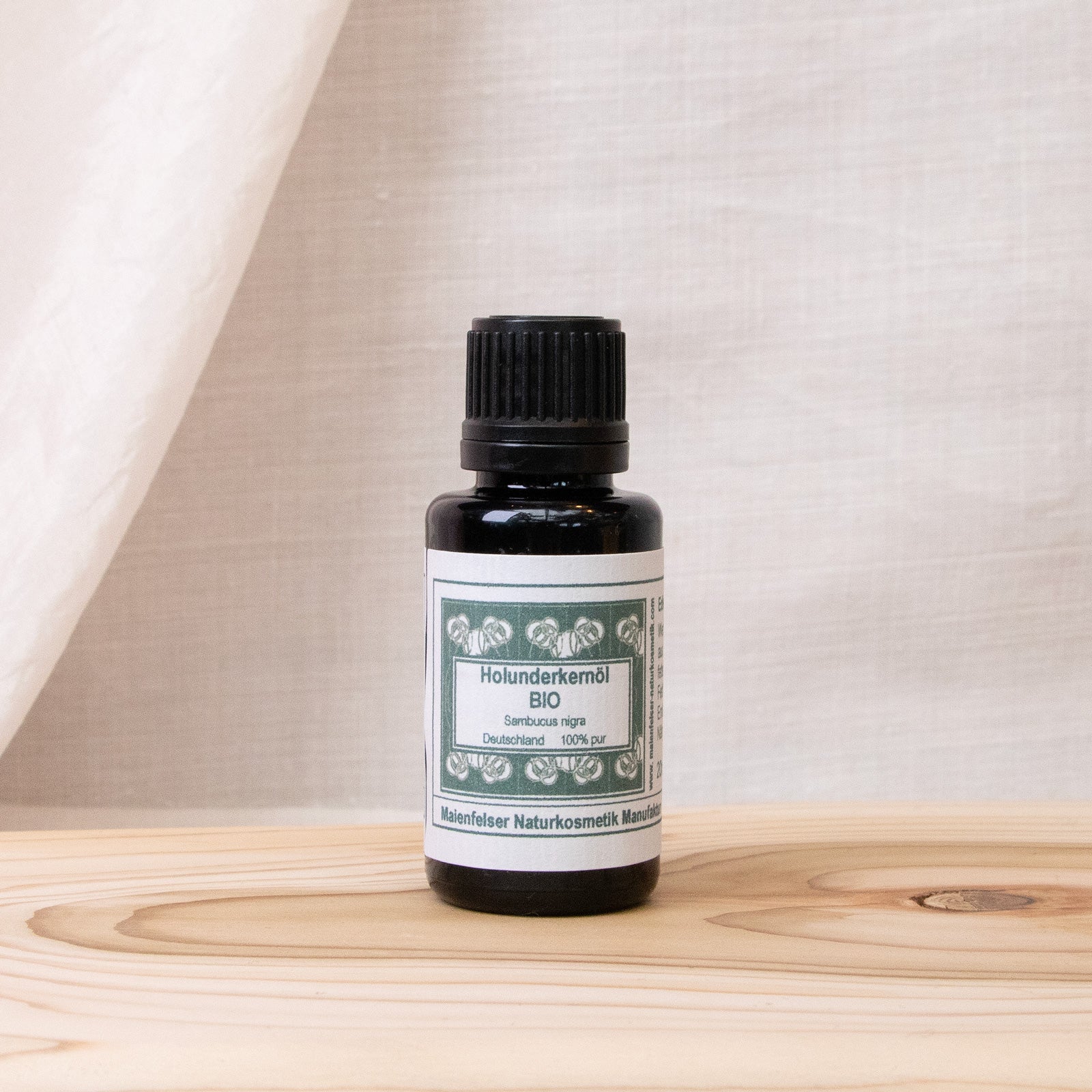 Wohl allen bekannt ist der Holunderbusch, häufig anzutreffen mit seinen wohlduftenden, weißen Blüten und den schwarzen Beeren. Viele Mythen ranken sich um diesen Strauch und wer einen Holunder im Garten stehen hat, darf sich glücklich schätzen. Aus den Kernen der schwarzen Beeren wird dieses kostbare Öl im Kaltpressverfahren hergestellt. Hier haben wir wiederum ein Beerenöl mit einer sehr hohen Konzentration der wichtigen Alpha-Linolensäure und einem hohen Anteil an Phytosterolen.