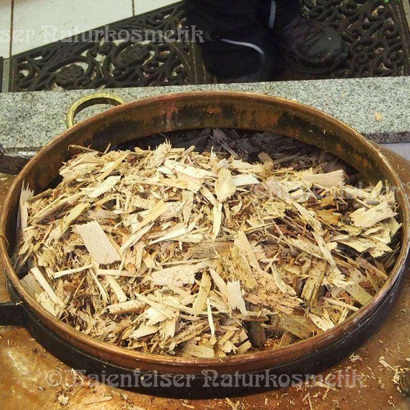 Demzufolge ist der Duft mehr holzig, harzig, sehr angenehm und leicht balsamisch.