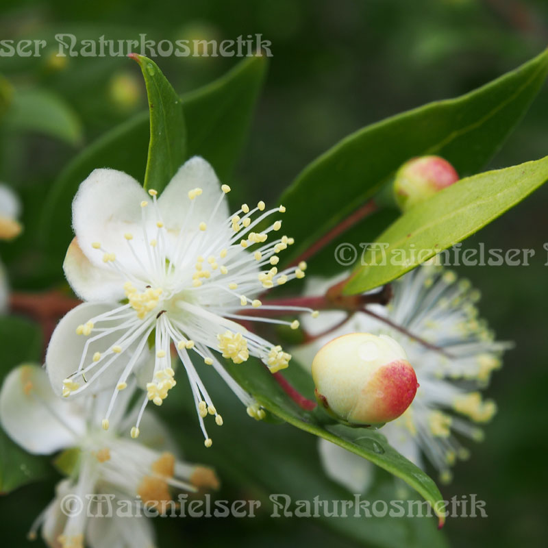 Diese Myrte ist sehr viel sanfter und milder als die anderen Arten, auch durch die Antrocknung der frisch geschnittenen Myrtenzweige vor der Destillation. Man verwendet dieses Verfahren noch bei anderen Kräutern, dass man sie ein paar Tage antrocknet und erst dann destilliert. Dies wird unter anderem auch bei manchem Lavendeldestillateuren praktiziert. Dieses Myrteöl hat eine sehr entspannende  und beruhigende Eigenschaft und eignet sich dem zu folge auch gut zum Einschlafen. Ein paar Spritzer auf das Kopfkissen vor dem Schlafen gehen, erhöht das Schlafbedürfnis.  Ebenso in einem Massageöl verwendet, erzielt es einen entkrampfenden, entspannenden Effekt.