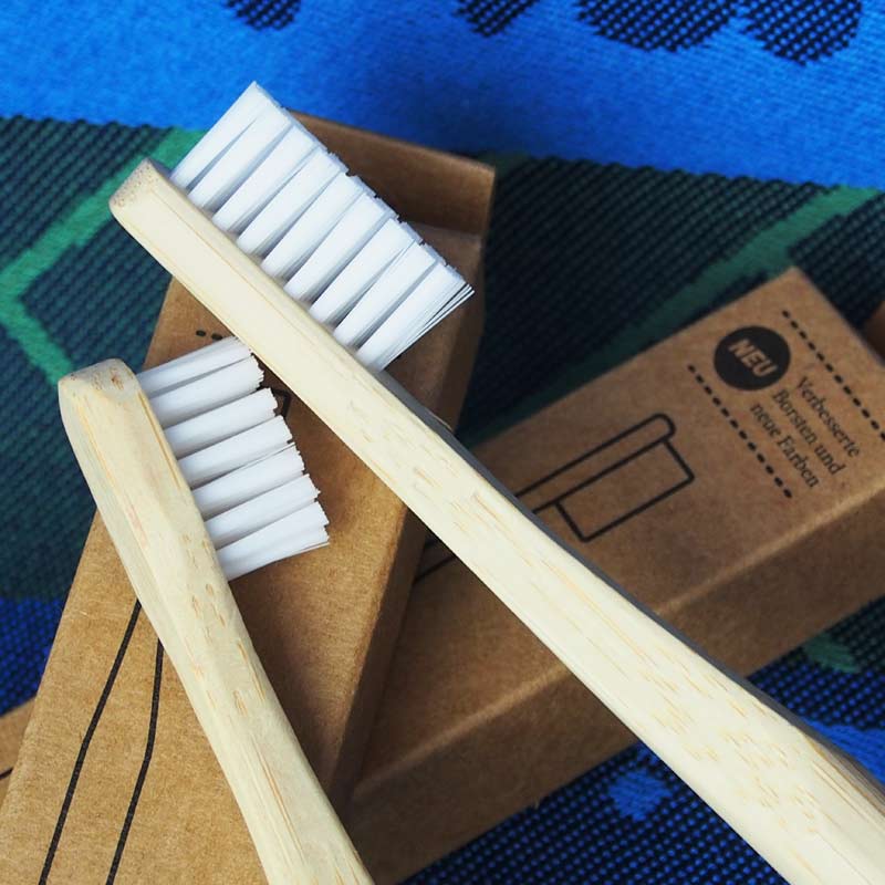 Unsere Nachhaltige Zahnbürste sieht nicht nur besonders gut aus, sondern ist auch eine gute Wahl bei der Verminderung Ihres Plastikmülls. Der Griff besteht aus besonders schnell nachwachsendem Bambus, die gefärbten Griffe aus zertifiziert biologisch Abbaubarer Farbe. Auch die Erdölfreien Borsten sind pflanzenbasiert. Sie werden aus Rizinusöl gefertigt