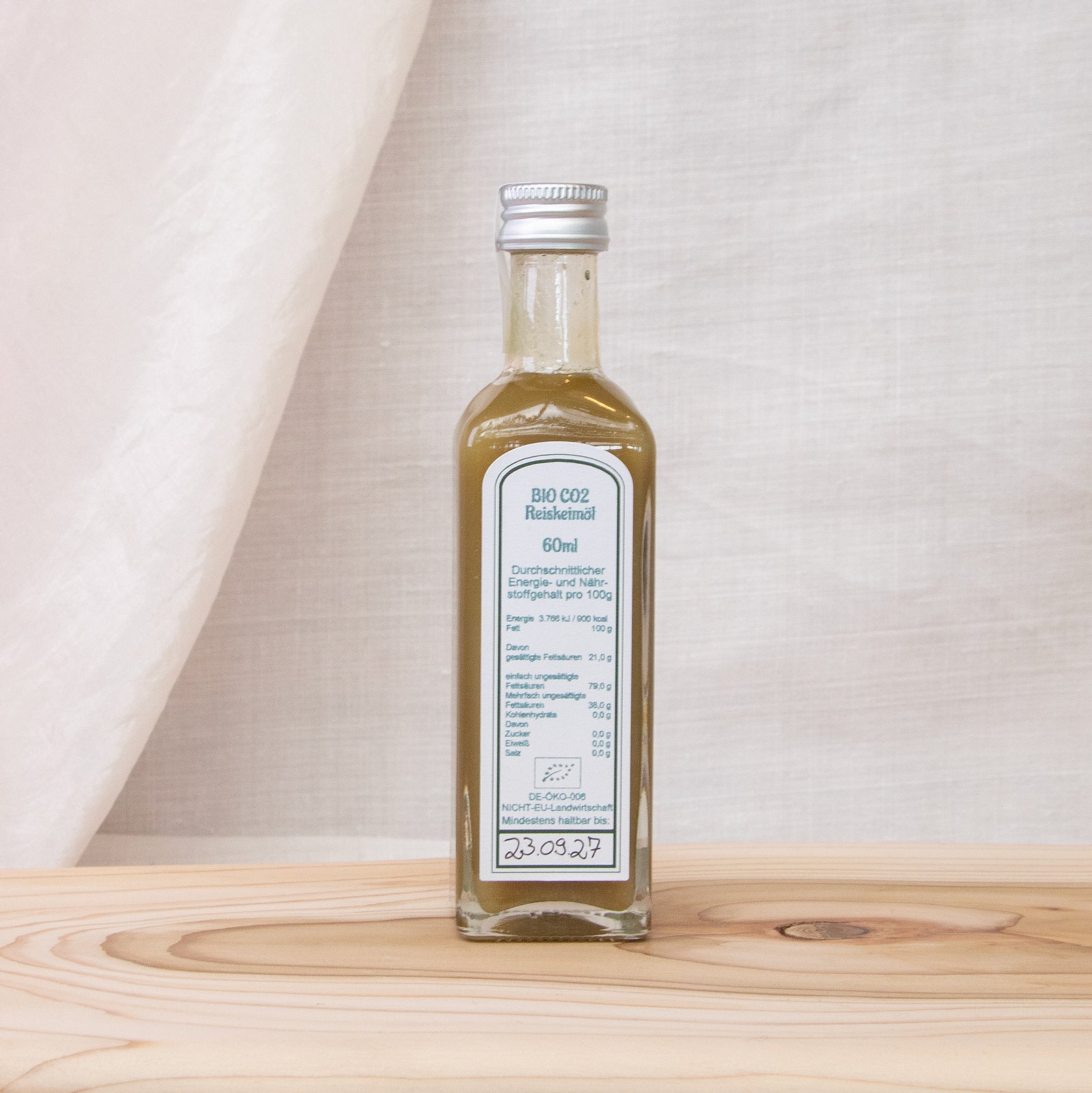 Hier können wir Ihnen unsere 2. Variante des Reiskeimöls anbieten. Hergestellt in schonender CO2-Extraktion, bei der noch alle Inhaltsstoffe im vollen Maße erhalten sind. Außerdem aus kontrolliert biologischen Anbau. Mit hohem Anteil an Y-Oryzanol. Dieses Öl ist aber nicht immer erhältlich und vom Preis her leider wesentlich teurer.