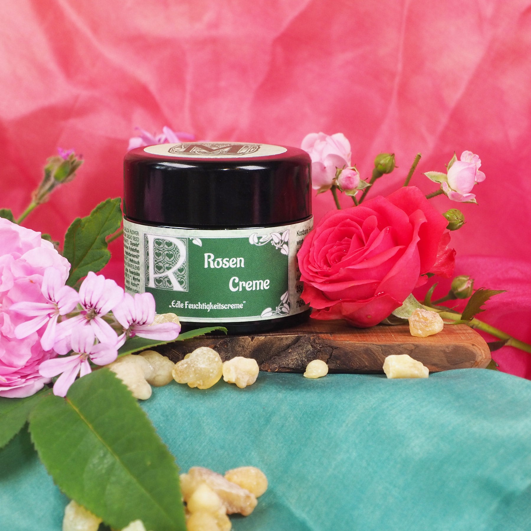 Eine bunte Mischung aus unseren hauseigenen Rosensorten (Rosa damascena, Rosa alba, Rosa centifolia) destilliert. Blumig, rosig, edel und fein im Duft.