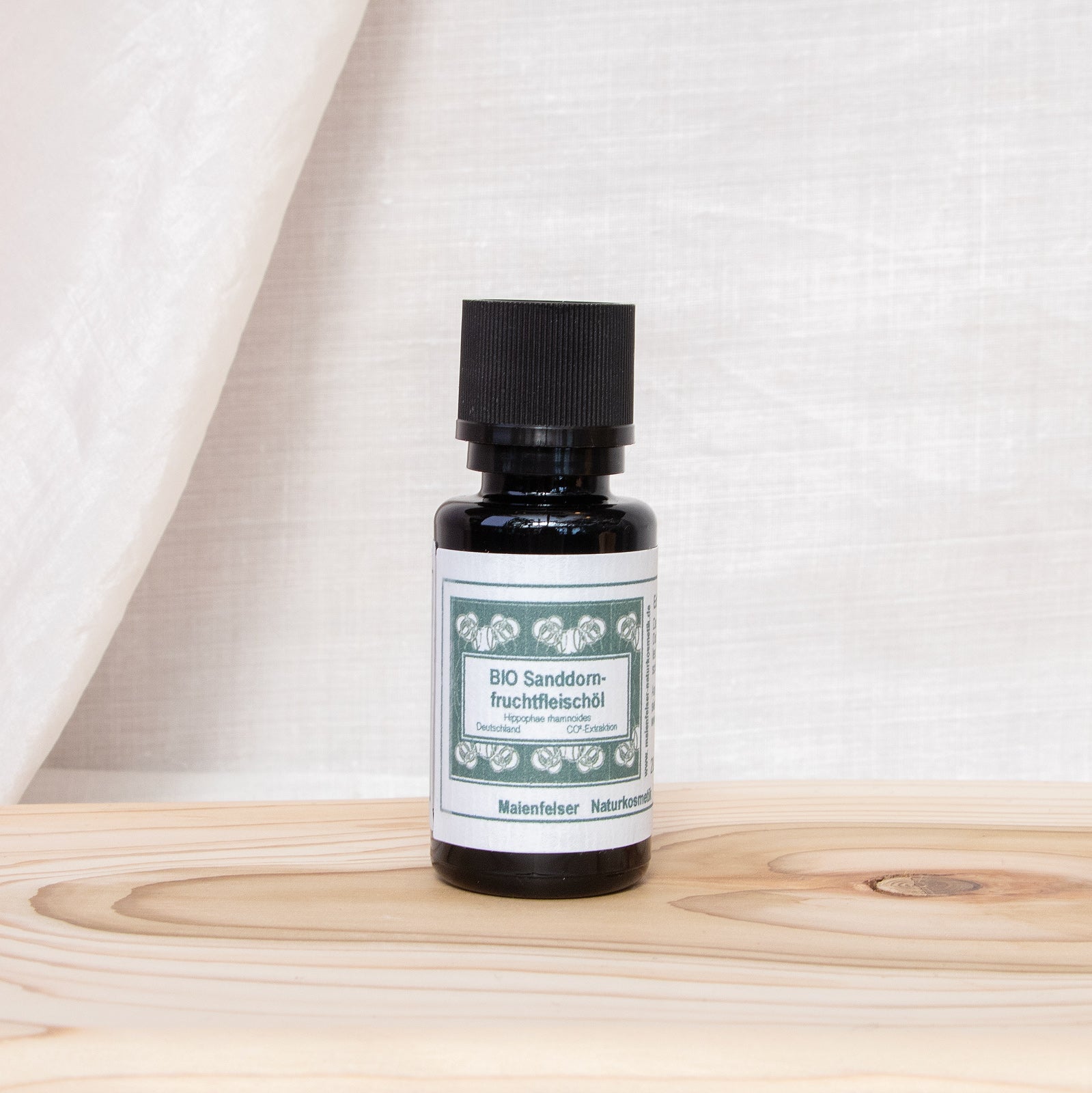 Kosmetische Verwendung: Sanddornfruchtfleischöl eignet sich hervorragend in Sonnenpflegeprodukten. Durch seine Carotinoide kann man sowohl innerlich wie äußerlich die Haut optimal auf eine etwaige Sonneneinstrahlung vorbereiten. Sanddornfruchtfleischöl sollte durch die hohe Konzentration und die dominante Farbe hauptsächlich als Begleitöl benutzt werden. Es reicht vollkommen aus, wenn nur ein geringer Prozentsatz in einer Kosmetikformulierung vorhanden ist. Sanddornfruchtfleischöl wirkt zellregenerierend und -erhaltend, es unterstützt die Neubildung von Hautzellen. Auch bestens für reife und empfindliche Haut geeignet. Wie Sie an der Ölsäurezusammenstellung sehen, unterscheiden sich die beiden unterschiedlichen Gewinnungsarten des Sanddornfruchtfleischöls sowie des Sanddornkernöles nicht wesentlich.