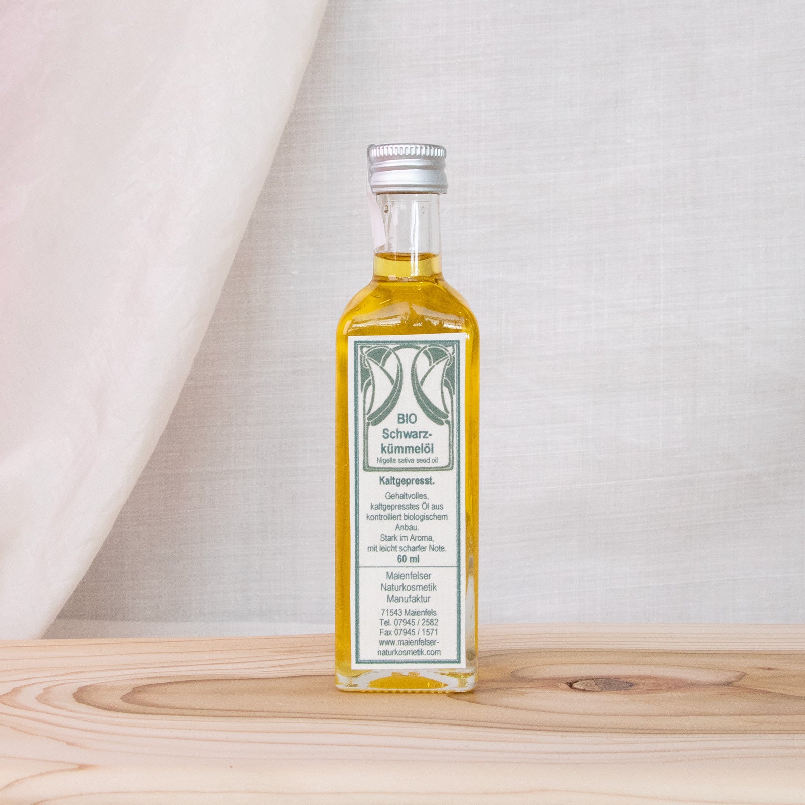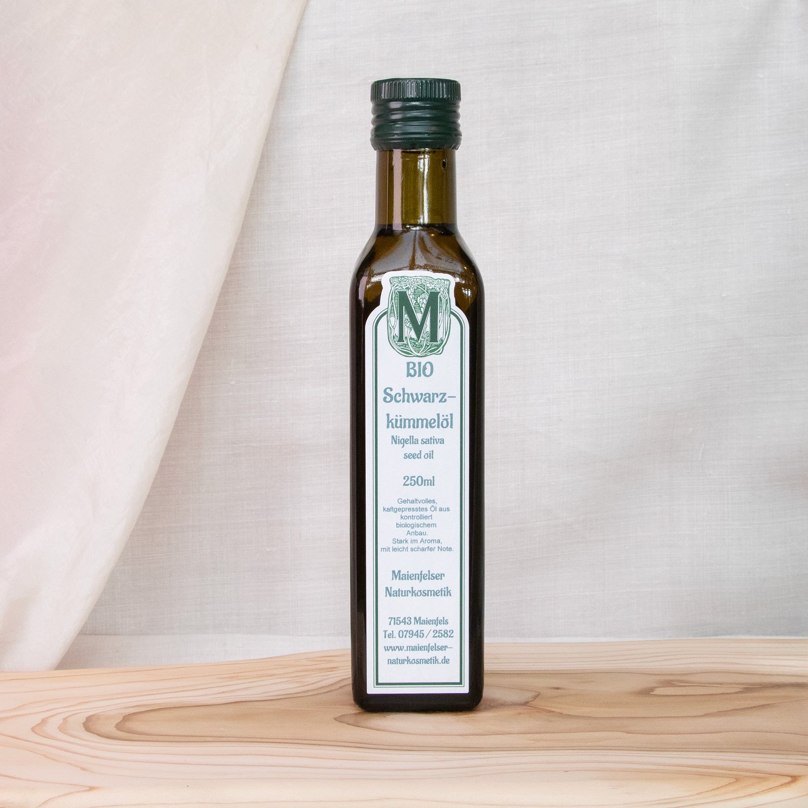 Schwarzkümmelöl hat sich in den letzen Jahren bei vielen Menschen etabliert und ist inzwischen fast überall bekannt. Die Schwarzkümmelsamen werden hier in Deutschland auf einer Spindelpresse kaltgepresst. Es ist ein braun-gelbes Öl mit äußerst mildem Geschmack mit der typischen Schwarzkümmelnote. Pfeffrig-würzige, leicht scharfe Note, aber noch angenehm.