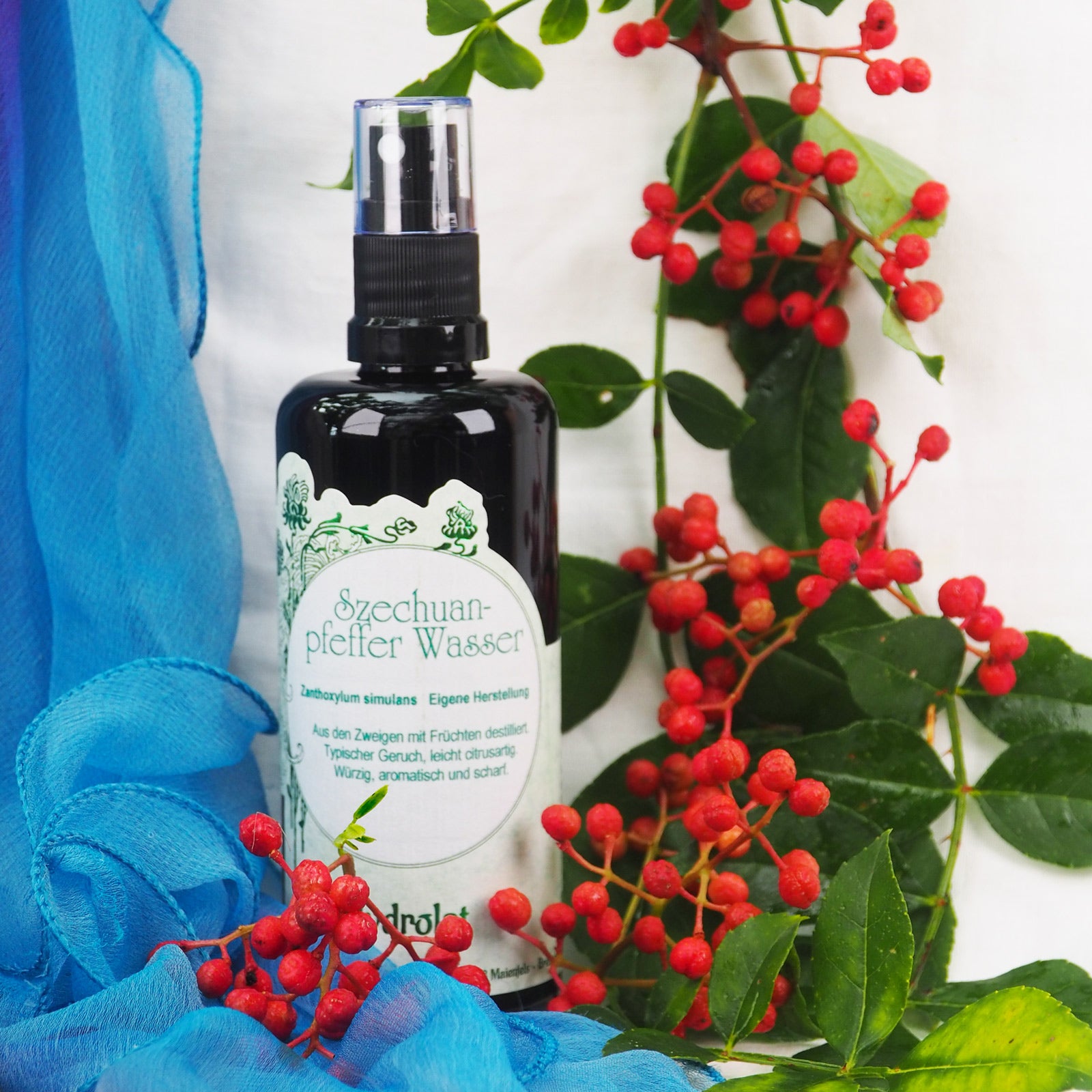 Aus der chinesisch /asiatischen Küche ist dieses Gewürz kaum wegzudenken. Auch unser Wasser hat diesen typischen starken Duft nach Szechuan Pfeffer, obwohl er in unserem Garten gewachsen ist, was uns immer wieder überrascht. Würzige Holznoten mit Citrusaromen und pfeffriger Schärfe.